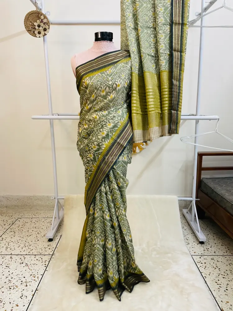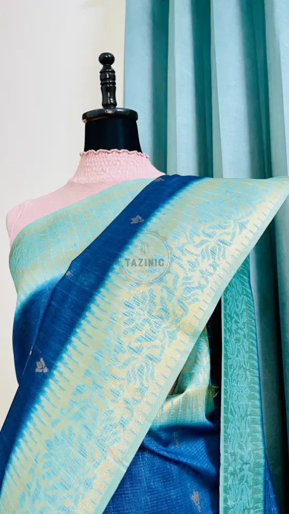 Tussar Silk Digital Print Embroidery - Pastel Blue